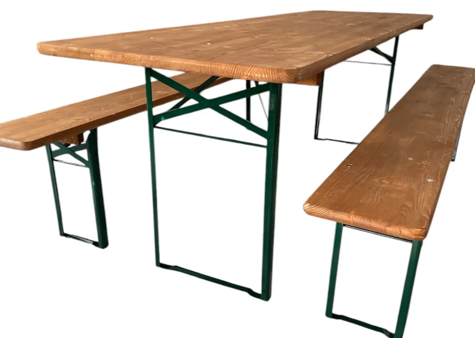 Standard-Bierzeltgarnitur 220×70 cm aus massivem Fichtenholz mit stabilem Stahlgestell. 30 mm starke Platten, zweischichtige, wasserbasierte Dicklasur in Nussbraun Weiterlesen| Artikelnummer | SBG |